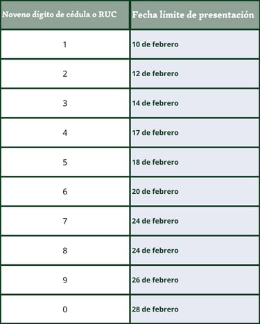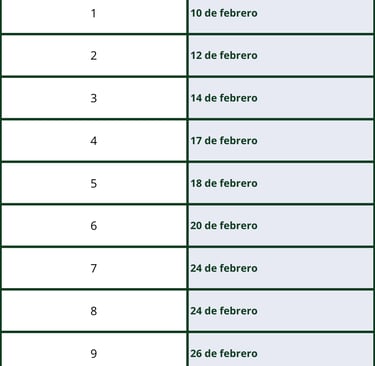 Fechas de presentación (febrero 2026)